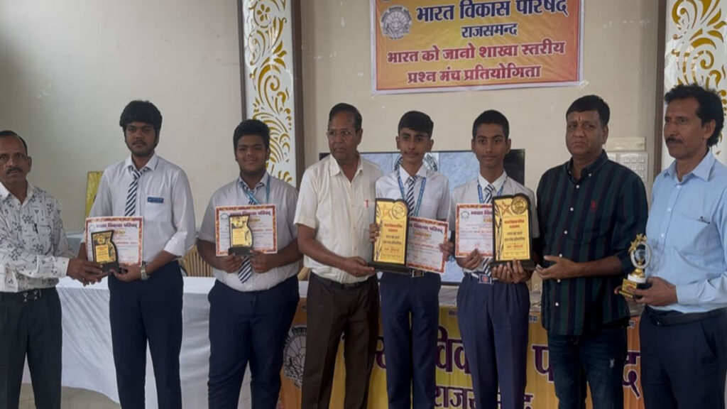 Bharat Ko Jano Quiz : राजसमंद में 22 सितंबर, सोमवार को 100 फीट रोड पर स्थित देव हेरिटेज वाटिका में भारत विकास परिषद द्वारा आयोजित शाखा स्तरीय “भारत को जानो” प्रश्न मंच प्रतियोगिता ने सभी का मन मोह लिया। इस रोमांचक और ज्ञानवर्धक प्रतियोगिता में कनिष्ठ वर्ग में गांधी सेवा सदन के राजवीर खत्री और अक्षत सिंह सिसोदिया ने शानदार प्रदर्शन करते हुए प्रथम स्थान हासिल किया। वहीं, वरिष्ठ वर्ग में आलोक स्कूल की यश्विनी सोनी और चार्वी शर्मा ने अपनी बुद्धिमत्ता और त्वरित जवाबों से विजेता का खिताब अपने नाम किया।
