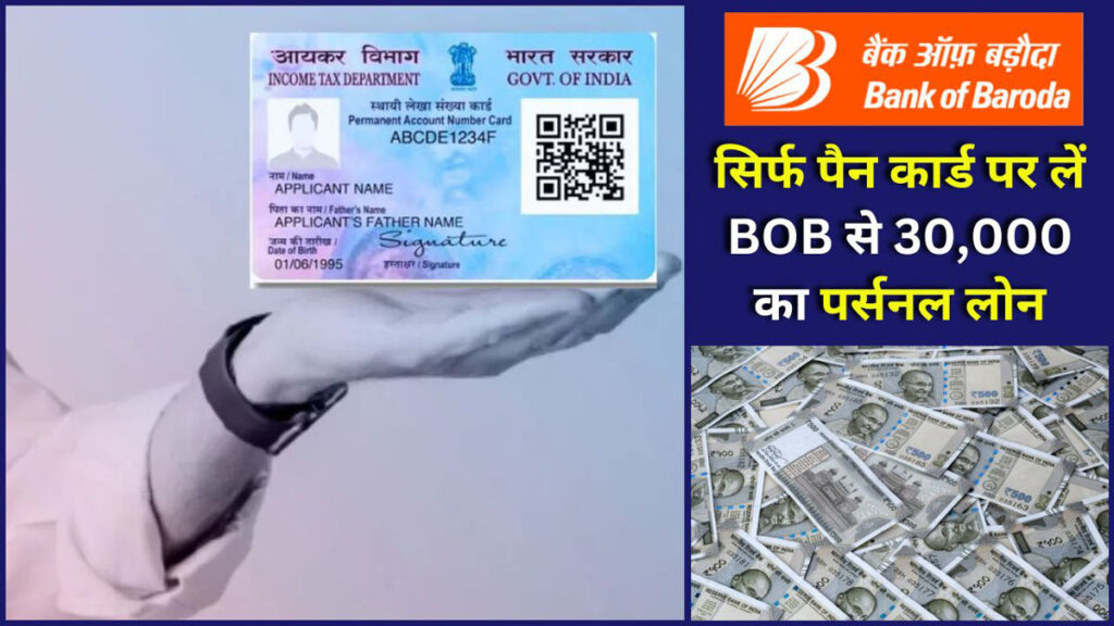 BOB Pan Card Loan : भारत में जब भी अचानक पैसों की जरूरत होती है, तो सबसे बड़ा सवाल उठता है – लोन कैसे मिलेगा, डॉक्युमेंट कहां से लाएं, बैंक जाएगा कौन? इन्हीं परेशानियों को खत्म करने के लिए Bank of Baroda (BOB) ने एक बेहतरीन डिजिटल सुविधा शुरू की है, जिसमें आप सिर्फ PAN कार्ड और आधार कार्ड से ₹30,000 तक का तत्काल पर्सनल लोन ले सकते हैं। इस स्कीम का नाम है – BOB Digital Personal Loan, जो खासतौर पर उन ग्राहकों के लिए है जो बैंक के मौजूदा अकाउंट होल्डर हैं।इस स्कीम की सबसे खास बात है कि इसमें न तो किसी इनकम प्रूफ की जरूरत है, न ही कोई गारंटर चाहिए। पूरा आवेदन BOB World App या बैंक की वेबसाइट पर किया जा सकता है। यह पूरी प्रक्रिया 100% पेपरलेस, फास्ट अप्रूवल, और सीधे खाते में क्रेडिट होने वाली है। आइए जानते हैं इस सुविधा के बारे में विस्तार से।