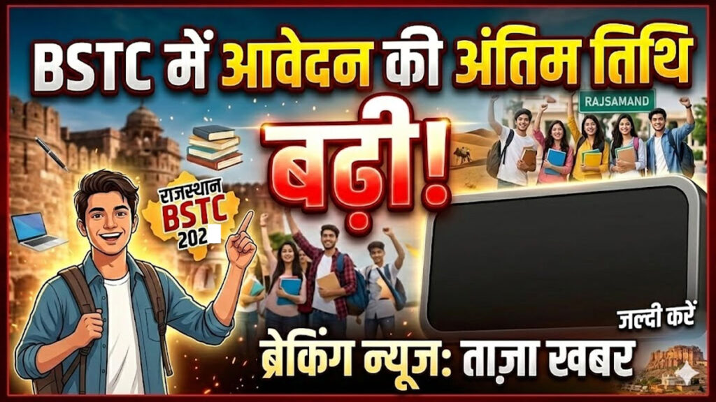 Bstc 2026 form date : राजस्थान में शिक्षक बनने का सपना देख रहे Bstc 2026 form date लाखों युवाओं के लिए बड़ी राहत की खबर है। राजस्थान प्री-डीएलएड (Pre DElEd) परीक्षा 2026, जिसे पहले BSTC Exam के नाम से जाना जाता था, के लिए ऑनलाइन आवेदन की अंतिम तिथि बढ़ाकर अब 11 मार्च 2026 कर दी गई है। वर्धमान महावीर Bstc 2026 form date खुला विश्वविद्यालय (VMOU), कोटा द्वारा जारी आधिकारिक अधिसूचना के अनुसार, अब अभ्यर्थियों को आवेदन करने के लिए अतिरिक्त समय दिया गया है। ऐसे में जो उम्मीदवार किसी कारणवश अभी Bstc 2026 form date तक आवेदन नहीं कर पाए थे, उनके पास यह अंतिम मौका है।