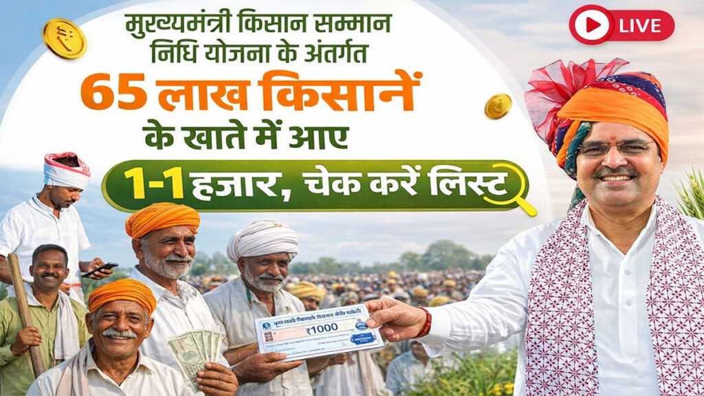 CM Kisan Samman Nidhi Yojana : राजस्थान के किसानों, महिलाओं और श्रमिकों के लिए 22 जनवरी का दिन बड़ी सौगात लेकर आया। मुख्यमंत्री भजनलाल शर्मा ने सिरोही से विभिन्न जनकल्याणकारी योजनाओं के तहत कुल ₹1590 करोड़ की राशि DBT (Direct Benefit Transfer) के माध्यम से लाभार्थियों के बैंक खातों में ट्रांसफर की। इस अवसर पर CM Kisan Samman Nidhi Yojana की पाँचवीं किस्त भी जारी की गई, जिसके अंतर्गत 65,30,752 किसानों को ₹1-1 हजार की आर्थिक सहायता सीधे उनके खातों में भेजी गई। हालांकि, इस बार एक बड़ा बदलाव देखने को मिला। पिछली किस्त में जहाँ करीब 74 लाख किसानों को लाभ मिला था, वहीं इस बार यह संख्या घटकर 65 लाख रह गई। यानी लगभग 9 लाख किसानों के नाम योजना की सूची से हट गए हैं।