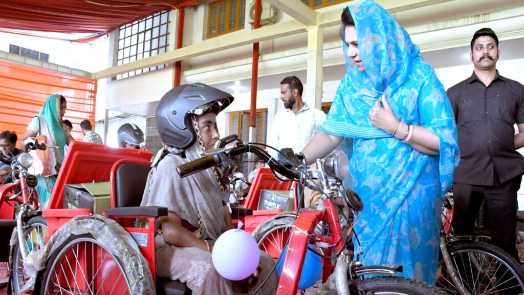 Motorized Tricycle Distribution 2025 : प्रोजेक्ट के तहत तीन प्रमुख संस्थाओं एम पी तापड़िया फाउंडेशन जसवंतगढ़ एवं मुंबई, एन के प्रोटीन्स प्राइवेट लिमिटेड अहमदाबाद तथा शुभकाम वेंचर्स (इंडिया) प्राइवेट लिमिटेड लाडनूं एवं मुंबई द्वारा चलन असमर्थता वाले दिव्यांगजन हेतु कुल 151 मोटराइज्ड ट्राईसाईकिल भेंट की गई जिनमें से अधिकांश का समारोह में वितरण किया गया। अब चलन असमर्थता लाभान्वित निर्धन दिव्यांगजन के जीवन में बाधा नहीं रहेगी और वे अपना जीवन सुचारु ढंग से जी सकेंगे। मोटराइज्ड ट्राई साइकिल वितरण से पहले सांसद, सम्भागीय आयुक्त, भामाशाहों, जनप्रतिनिधियों ने प्रत्येक दिव्यांग का उपरना ओढा कर सम्मान किया। सांसद हर दिव्यांग से आत्मीयता से मिली।