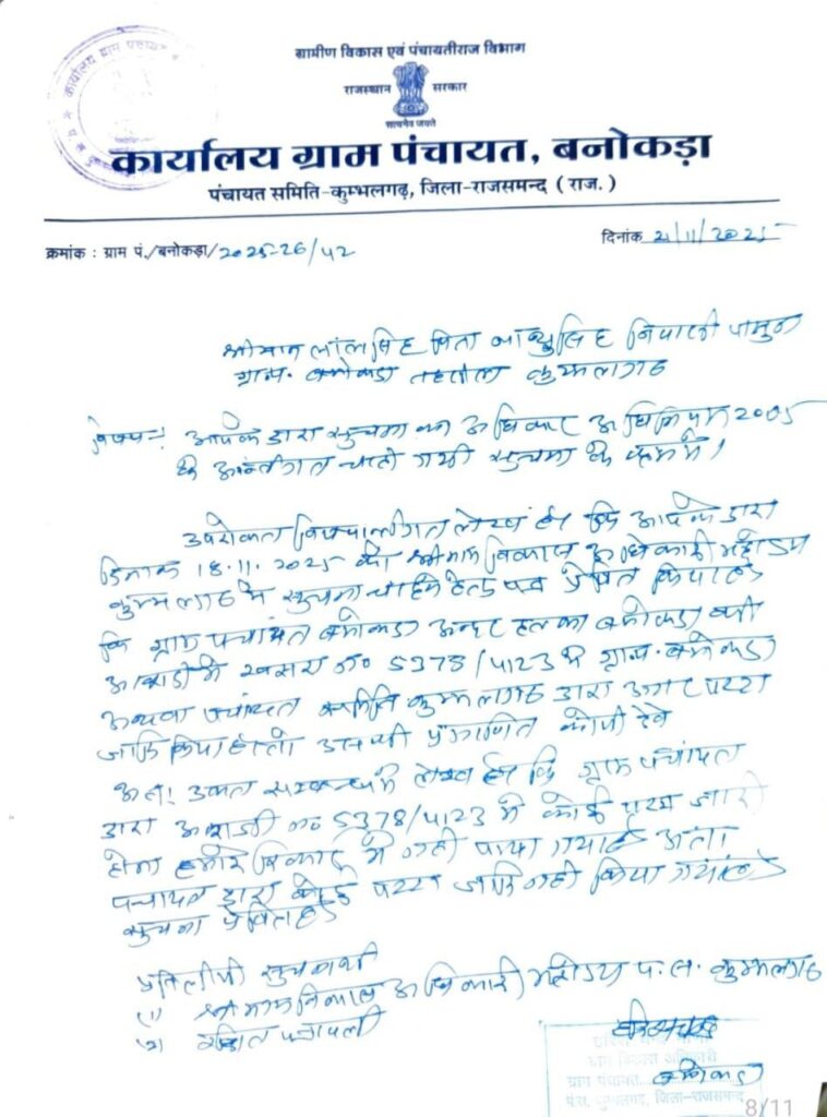 बनोकड़ा में सरकारी जमीन पर कतिपय व्यक्तियों द्वारा अवैध निर्माण किया जा रहा है, जो गलत है। प्रशासक व वीडीओ कार्रवाई के लिए अधिकृत व स्वतंत्र है। पंचायत समिति कुंभलगढ़ का कोई रोल नहीं रहता है। ग्राम पंचायत की सरकारी जमीन स्पष्ट हो चुकी है, तो फिर निर्माण ग्राम पंचायत को रूकवाना चाहिए।