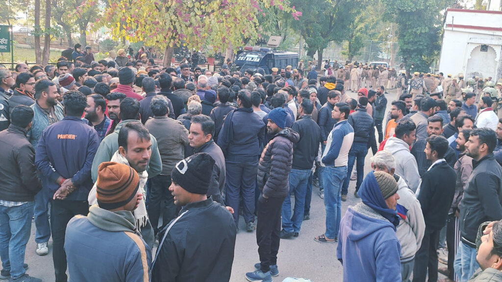 Rajsamand police : कांकरोली थाना प्रभारी सरोज बैरवा ने बताया कि धोइंदा निवासी हरीश जोशी 30 दिसंबर 2025 शाम घर से लापता हो गई। कांकरोली थाने में गुमशुदगी दर्ज करते हुए पुलिस ने उसकी तलाश शुरू कर दी, मगर हरीश का मोबाइल स्वीच हो गया। इस बीच पुलिस लगातार तलाश के प्रयास में जुटी रही, मगर उसके हरीश के बारे में कोई पता नहीं चल पाया। हरीश का पता नहीं चलने पर 5 जनवरी को आक्रोशित लोग जिला कलक्ट्री के द्वार पर धरने पर बैठ गए। बाद में राजसमंद विधायक दीप्ति माहेश्वरी भी पहुंची और प्रशासन को 48 घंटे का अल्टीमेटम दिया गया। परिजनों शंका के आधार पर पुलिस कुछ संदिग्ध लोगों से पूछताछ कर रही थी, तभी हरीश जोशी का शव उदयपुर जिले के घासा थाना क्षेत्र में वाड़ा बावड़ी के कुएं में मिल गया। इस पर राजसमंद डीएसपी नेत्रपालसिंह उदयपर पहुंचे और परिजनाें की मौजूदगी में शव का पोस्टमार्टम हो गया, मगर परिजन व सर्वसमाज मुआवजे की मांग पर अड़ गए। इस कारण फिलहाल शव उदयपुर के एमबी हॉस्पीटल में पड़ा है और आक्रोशित लोग बुधवार सुबह 11 बजे से ही जिला कलक्ट्री के मुख्य द्वार पर धरने पर बैठे हैं। आक्रोशित लोग जिला कलक्टर को मुख्य द्वार पर आने की बात पर अड़ गए।