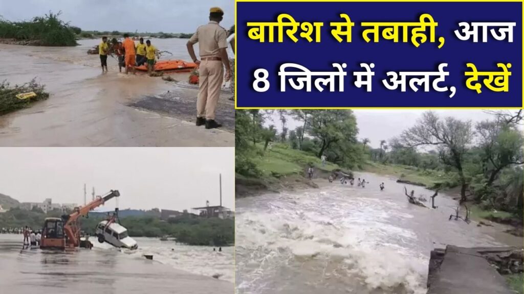 Rain Alert : राजस्थान में मानसून ने एक बार फिर अपनी ताकत दिखाई है। मौसम विभाग ने गुरुवार, 28 अगस्त 2025 को प्रदेश के 8 जिलों में भारी बारिश का अलर्ट जारी किया है। इनमें जयपुर, जोधपुर, उदयपुर, कोटा, भरतपुर, और अन्य संभाग शामिल हैं। बुधवार को जयपुर, जोधपुर, और भरतपुर सहित कई जिलों में मूसलाधार बारिश ने जनजीवन को अस्त-व्यस्त कर दिया। सड़कों पर घुटनों तक पानी भर गया, जिससे यातायात बुरी तरह प्रभावित हुआ। जोधपुर शहर में तो हालात इतने खराब हो गए कि कई वाहन पानी के तेज बहाव में बह गए।