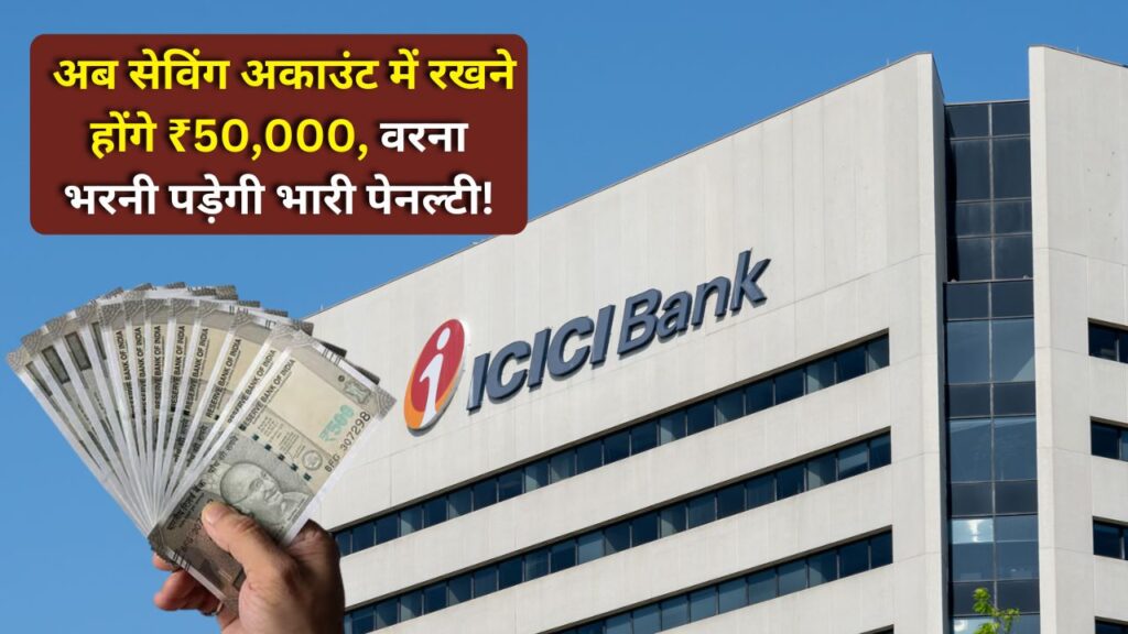 ICICI savings account 50,000 balance rule : ICICI बैंक ने केवल मेट्रो और शहरों में ही नहीं, बल्कि ग्रामीण और अर्ध-शहरी (Semi-Urban) इलाकों के लिए भी Minimum Balance की लिमिट बढ़ा दी है।