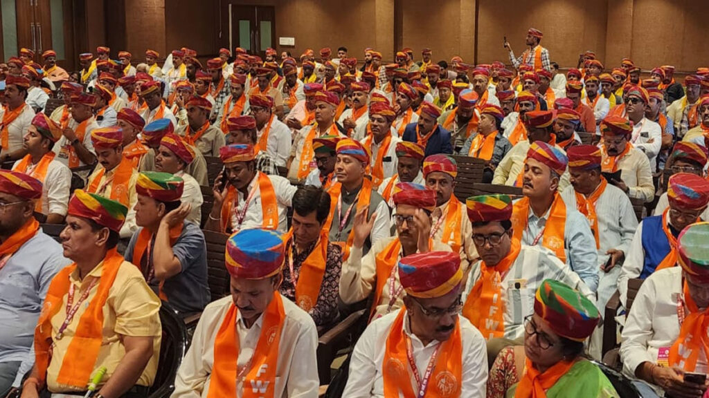 Jodhpur journalism event अधिवेशन में शामिल पत्रकारों का स्वागत राजस्थानी परंपरा के अनुसार साफा पहनाकर किया गया, जिसने आयोजन में स्थानीय संस्कृति की झलक पेश की। माहेश्वरी भवन के प्रवेश द्वार पर यह स्वागत समारोह राजस्थान की आतिथ्य परंपरा को दर्शाता था। कार्यक्रम का संचालन राजस्थान प्रदेश उपाध्यक्ष राजीव गौड़ ने किया, जबकि मुख्य संयोजक नंदकिशोर शाह ने अंत में सभी का आभार व्यक्त किया।
