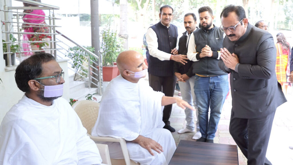 राजसमंद। Jain Muni Sambodh Kumar : रविवार सुबह जैन मुनि संबोध कुमार जिला कलक्टर अरुण कुमार हसीजा के राजकीय आवास पहुंचे, जहां उन्होंने अपनी ओजस्वी वाणी से उपस्थितजनों को आत्मचिंतन और जीवन मूल्यों की दिशा में मार्गदर्शन दिया। मुनि के आगमन पर जिला कलक्टर अरुण कुमार हसीजा ने सपरिवार, विभिन्न विभागों के जिला स्तरीय अधिकारियों तथा जैन समाज के स्थानीय नागरिकों के साथ उनका स्वागत किया और प्रवचन का लाभ लिया। इस अवसर पर जिला कलक्टर ने स्वयं को इस पुण्य अवसर का निमित्त मानते हुए आभार व्यक्त किया।