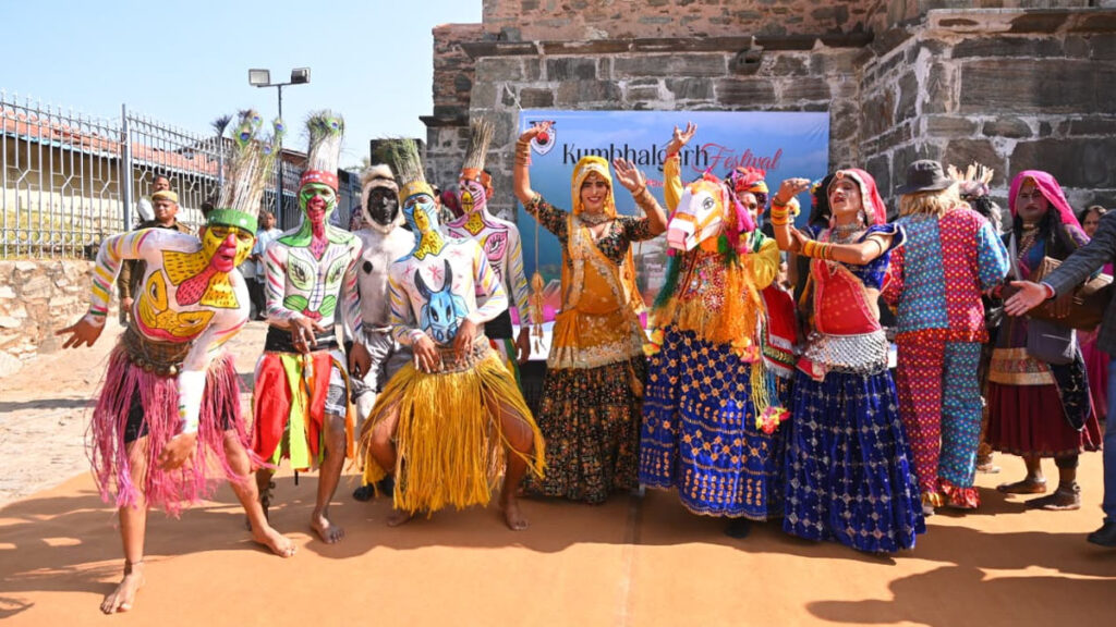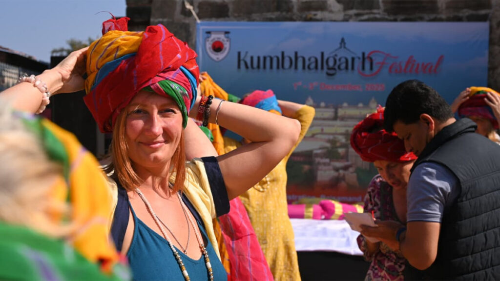 Kumbhalgarh Fort Festival : दिनभर कुंभलगढ़ दुर्ग में पर्यटकों की भारी भीड़ रही। कई विदेशी पर्यटक भी स्थानीय कलाकारों के साथ थिरकते नजर आए। पारंपरिक राजस्थानी पोशाकों में सजे कलाकारों की प्रस्तुति के बीच कई पर्यटक भी खुद को रोक नहीं पाए और संगीत की ताल पर झूमते नजर आए। राजस्थानी गीत, लोक वाद्य, संस्कृति और स्वादिष्ट व्यंजनों ने सभी को मंत्रमुग्ध कर दिया। पगड़ी बांधो प्रतियोगिता में भी विदेशी पर्यटकों सहित पर्यटकों की बड़ी भागीदारी देखने को मिली। अपने सिर पर रंग-बिरंगी राजस्थानी पगड़ी सजाकर पर्यटक खुशी से भर गए और सेल्फी लेने में मशगूल दिखे।