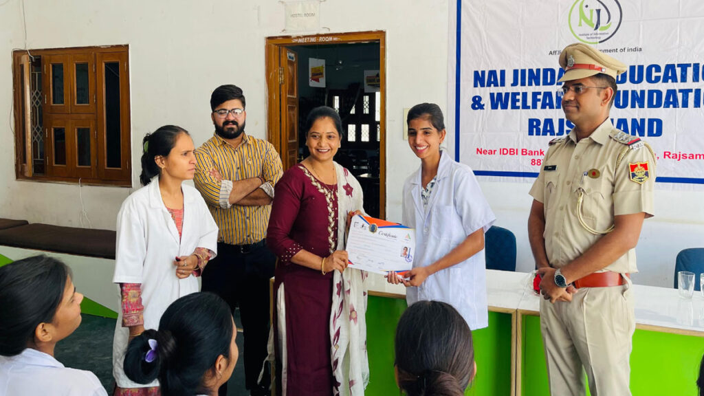 Nai Jindagi Education And Welfare Foundation नई जिंदगी एजुकेशन एण्ड वेलफेयर फाउंडेशन, राजसमंद के तत्वावधान में सोमवार को GDA (जनरल ड्यूटी असिस्टेंट) कोर्स के प्रशिक्षणार्थियों का प्रमाण पत्र वितरण समारोह बड़े ही उत्साह एवं गरिमा के साथ आयोजित किया गया।