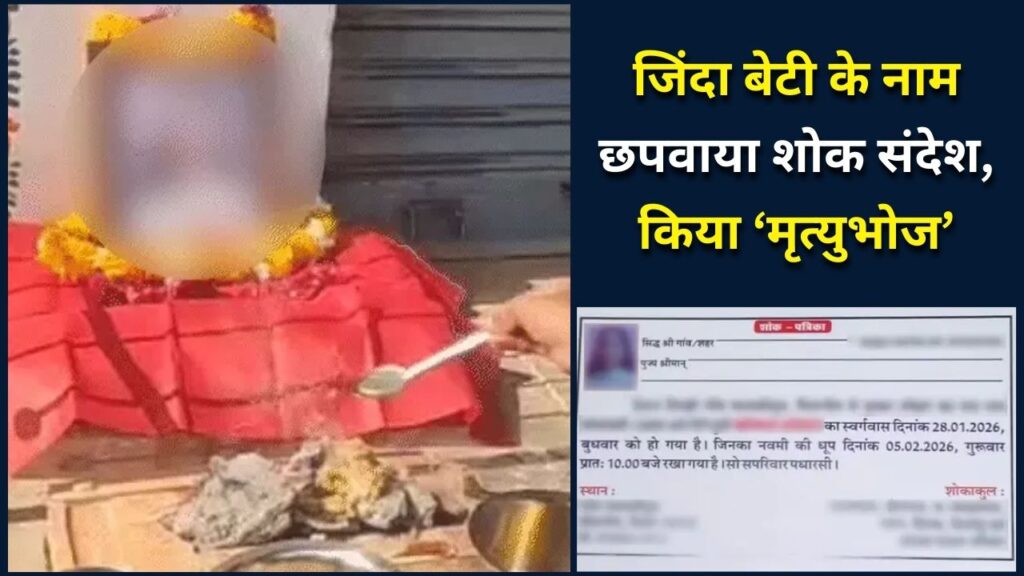 Funeral feast for living daughter : पिता के मुताबिक, बेटी ने उनसे और पूरे परिवार से संबंध खत्म करने की बात कही। उसने स्पष्ट कर दिया कि वह उसी युवक के साथ रहना चाहती है, जिसके साथ वह गई है। परिवार की इज्जत, माता-पिता की भावनाएं और समाज की परंपराएं—इन सभी बातों का उस पर कोई असर नहीं पड़ा। बेटी के इस रवैये से पिता गहरे आहत हो गए। उनका कहना है कि उन्होंने अपनी जिंदगी की सारी कमाई, सम्मान और विश्वास बेटी पर न्यौछावर किया था, लेकिन बदले में उन्हें यह दिन देखना पड़ा।