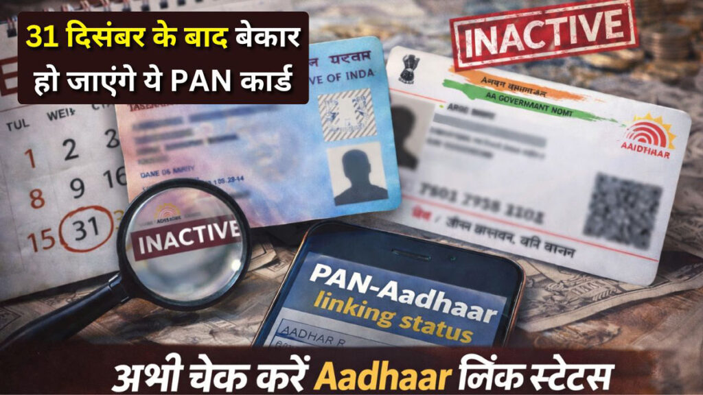 PAN Aadhaar linking last date 2025 अगर आपने 1 अक्टूबर 2024 से पहले Aadhaar Enrolment ID के आधार पर PAN कार्ड बनवाया था, तो आपके लिए एक बेहद जरूरी खबर है। सरकार ने PAN–Aadhaar Linking की अंतिम तिथि 31 दिसंबर 2025 तय की है। इस तारीख के बाद जिन PAN कार्ड्स को आधार से लिंक नहीं किया जाएगा, वे अपने आप Inactive हो जाएंगे, यानी व्यावहारिक रूप से बेकार हो सकते हैं। PAN कार्ड निष्क्रिय होने पर आयकर रिटर्न (ITR) फाइल करना, Tax Refund प्राप्त करना, बैंक से जुड़े कई काम, निवेश (Investment), लोन (Loan) और अन्य Financial Services में गंभीर परेशानियां आ सकती हैं। इसलिए समय रहते यह जांच लेना बेहद जरूरी है कि आपका PAN आधार से लिंक है या नहीं। अच्छी बात यह है कि PAN–Aadhaar Linking Status जानने के लिए आपको न तो कहीं जाने की जरूरत है और न ही किसी तरह का शुल्क देना होगा। आप यह काम घर बैठे, ऑनलाइन कुछ ही मिनटों में कर सकते हैं।