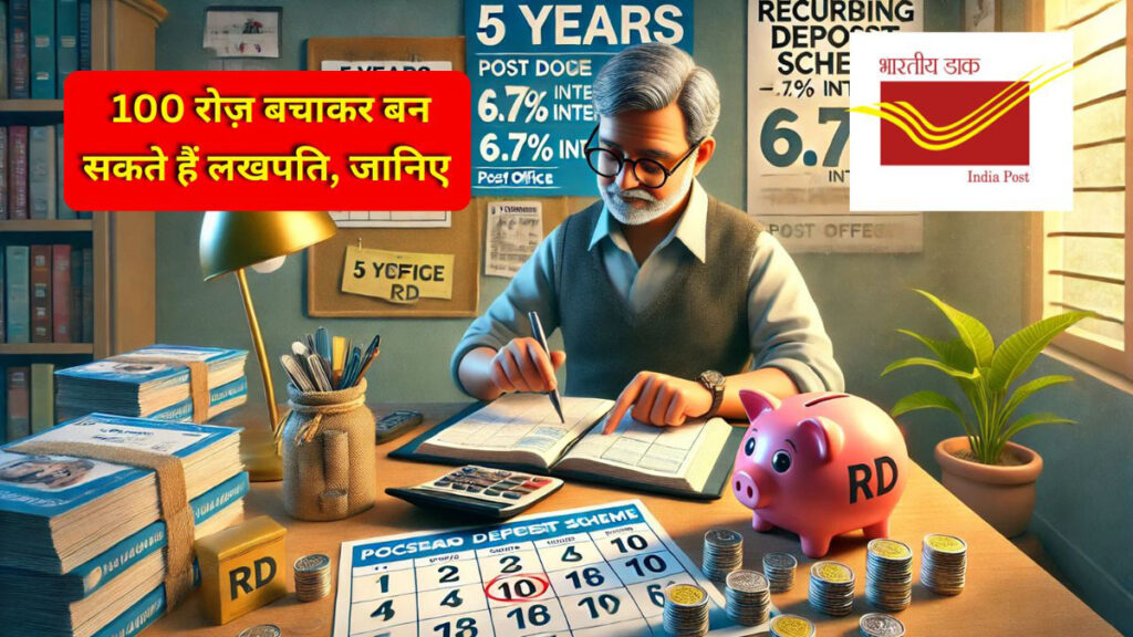 Daily saving 100 rupees investment plan पोस्ट ऑफिस रिकरिंग डिपॉजिट (RD) एक ऐसी बचत योजना है, जो 5 साल की अवधि के लिए होती है। इस स्कीम में आपको हर महीने एक निश्चित राशि जमा करनी होती है, और बदले में आपको उस राशि पर आकर्षक ब्याज मिलता है। वर्तमान में पोस्ट ऑफिस RD स्कीम पर 6.7% की वार्षिक ब्याज दर दी जा रही है, जो तिमाही आधार पर कंपाउंड होती है। इसका मतलब है कि आपका ब्याज हर तीन महीने में आपके जमा राशि में जुड़ता रहता है, जिससे आपकी कुल राशि तेजी से बढ़ती है। चूंकि यह एक सरकारी योजना है, इसमें निवेश पूरी तरह सुरक्षित माना जाता है, और आपको अपने पैसे की सुरक्षा को लेकर किसी भी तरह की चिंता करने की जरूरत नहीं होती।