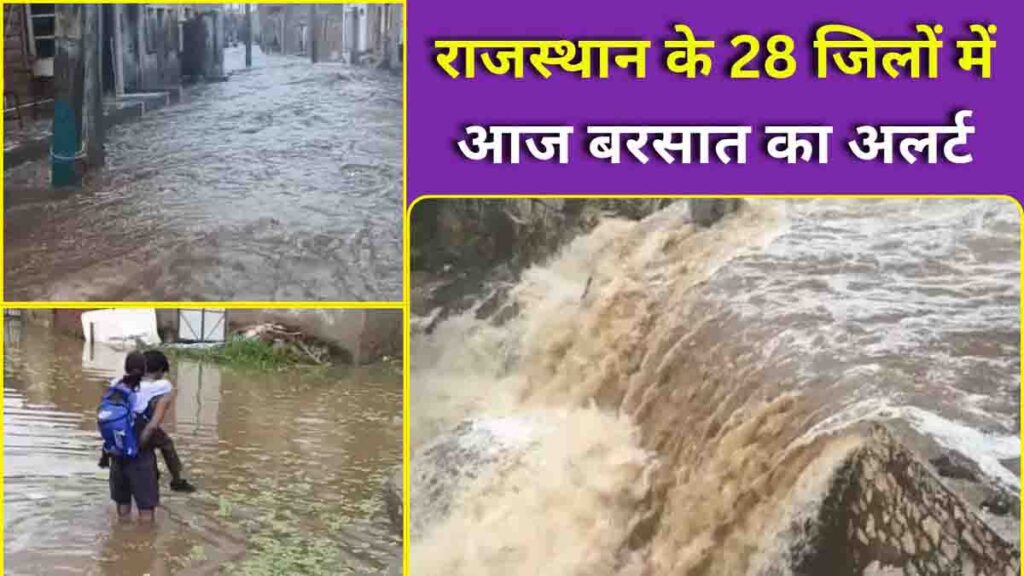 Rajasthan ka Mosam : पिछले 24 घंटों में राजस्थान के कई जिलों में भारी बारिश दर्ज की गई। धौलपुर के सरमथुरा में सबसे अधिक 80 मिलीमीटर बारिश हुई। इसके अलावा, जोधपुर के लोहावट में 41 मिमी, आऊ में 40 मिमी, नागौर के खींवसर में 54 मिमी, मूंडवा में 45 मिमी, परबतसर में 37 मिमी, भरतपुर के वैर में 30 मिमी, बूंदी के हिंडौली में 54 मिमी और नैनवां में 41 मिमी बारिश दर्ज की गई। Aaj ka Mosam