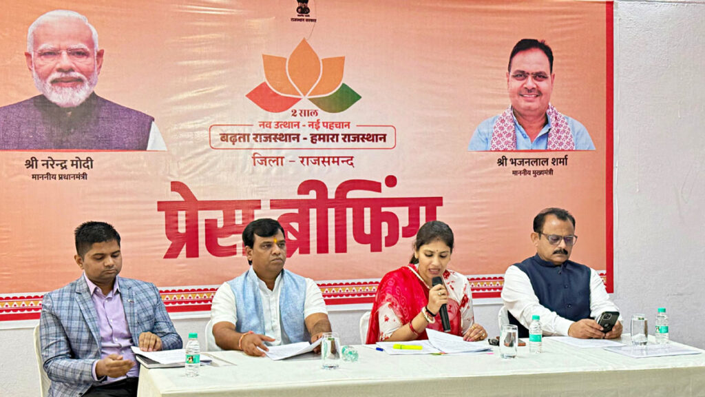 Rajasthan Budget 2026-27 : राज्य बजट 2026-27 को लेकर राजसमंद विधायक दीप्ति माहेश्वरी ने प्रेस ब्रीफिंग कर विस्तृत जानकारी दी। इस अवसर पर जिलाध्यक्ष जगदीश पालीवाल, जिला कलक्टर अरुण कुमार हसीजा सहित अन्य जनप्रतिनिधि, अधिकारी एवं मीडिया कर्मी मौजूद रहे।
