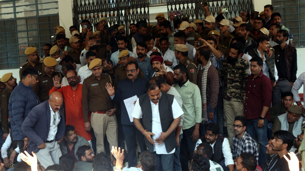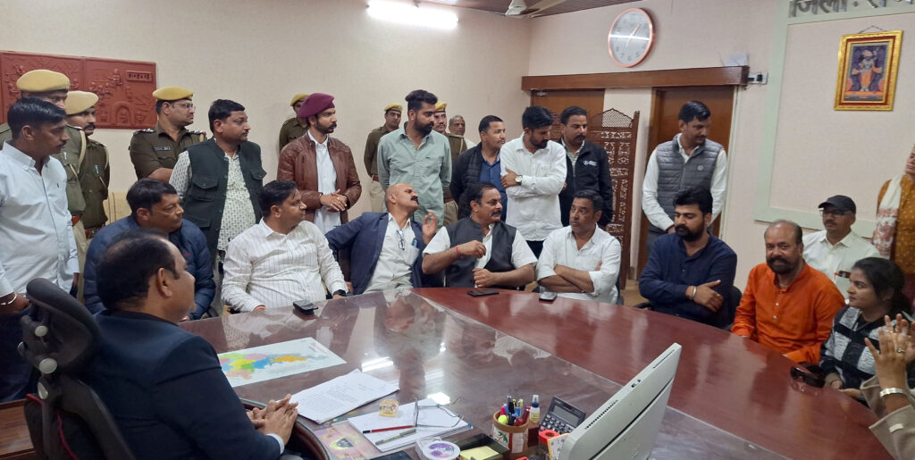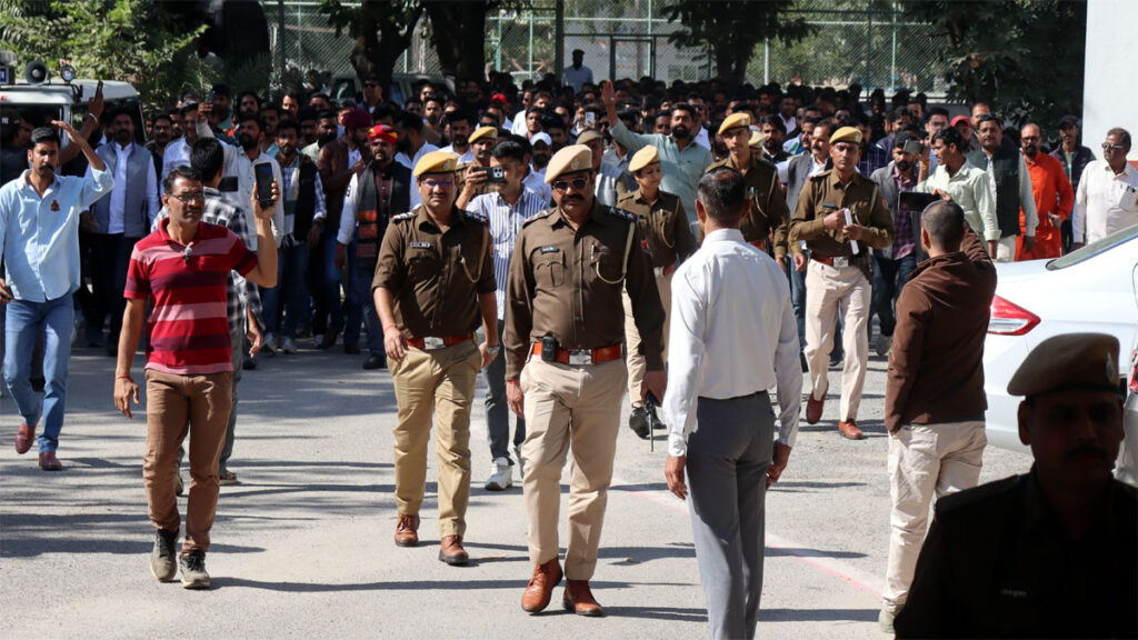 IAS Arun kumar Hasija : क्षत्रिय महासभा, करणी सेना एवं ब्रह्मशक्ति मेवाड़ के आह्वान पर शुक्रवार दोपहर में जिला कलक्ट्री के पास स्थित महाराणा प्रताप उद्यान में सर्वसमाज के लोग एकत्रित हुए। उद्यान परिसर में सर्वसमाज की बैठक हुई, जिसमें क्षत्रिय महासभा के महेंद्रसिंह चौहान ने 30 नवंबर 2025 को पचास फीट रोड का नामकरण आचार्य महाश्रमण अहिंसा मार्ग के रूप् में लोकार्पण के साथ उपजे विवाद में नगरपरिषद की लापरवाही बताई। चौहान ने कहा कि पूर्व चेयरमैन महेश पालीवाल द्वारा नगरपरिषद आयुक्त को अवगत करवाने के बावजूद उस मार्ग का अहिंसा मार्ग के रूप में लोकार्पण कर दिया। नगरपरिषद व प्रशासन को चेतावनी पत्र देने के बावजूद नगरपरिषद आयुक्त द्वारा माफी तक नहीं मांगी गई, जिससे बालकृष्ण स्टेडियम में भरत दवे व कुछ युवाओं ने स्याही फेंकी, लेकिन नगरपरिषद आयुक्त द्वारा सफाईकर्मियों से बेरहम मारपीट करवाई और फिर झूठा एससीएसटी एक्ट में प्रकरण दर्ज करवा दिया। साथ ही शांतिभंग करने के आरोप में गिरफ्तार भी कर लिया और भरत दवे की तरफ से जो रिपोर्ट दी गई, उस पर पुलिस द्वारा कोई कार्रवाई नहीं करने के आरोप लगाते हुए आक्रोश व्यक्त किया। उसके बाद सर्वसमाज के लोग सौ फीट रोड से पैदल रवाना हुए, जो नगरपरिषद आयुक्त, सभापति व पुलिस के खिलाफ नारे लगाते हुए सीएमएचओ कार्यालय, भारत माता उद्यान के सामने होकर जिला पुलिस अधीक्षक कार्यालय से जिला कलक्ट्री के मुख्य द्वार पर पहुंचे, जहां युवराजसिंह दोवड़ाई ने ज्ञापन पढ़कर सर्वसमाज को सुनाया। साथ ही नगरपरिषद के कतिपय कार्मिक द्वारा झूठी रिपोर्ट को वापस लेने, आयुक्त ब्रजेश राय व स्वास्थ्य निरीक्षक गिरीराज गर्ग को हटाने, कांकरोली थाने में दर्ज एफआईआर की जांच नाथद्वारा या कुंभलगढ़ पुलिस उप अधीक्षक से करवाने, भरत दवे की रिपोर्ट पर एफआईआर दर्ज करने की मांग उठाई। उसके बाद आक्रोशित लोग जिला कलक्टर को मुख्य द्वार पर आने की बात पर अड़ गए। बाद में कलक्टर अरुण कुमार हसीजा व एसडीएम ब्रजेश गुप्ता द्वार पर पहुंचे और लोगों का ज्ञापन लिया। फिर विस्तृत चर्चा के लिए सर्वसमाज का प्रतिनिधि मंडल जिला कलक्टर से मिला, जहां सभी लोगों ने अपनी समस्या, शिकायत, आक्रोश जताते हुए पुलिस व नगरपरिषद के प्रति नाराजगी जिला कलक्टर के समक्ष व्यक्त की। इस पर कलक्टर ने शिकायत को सुनने के बाद प्रत्येक मांग पर दो दिन में ठोस कार्रवाई का आश्वासन दिया, तब सर्वसमाज के लोग शांत हुए। Police Deployment Rajsamand Protest