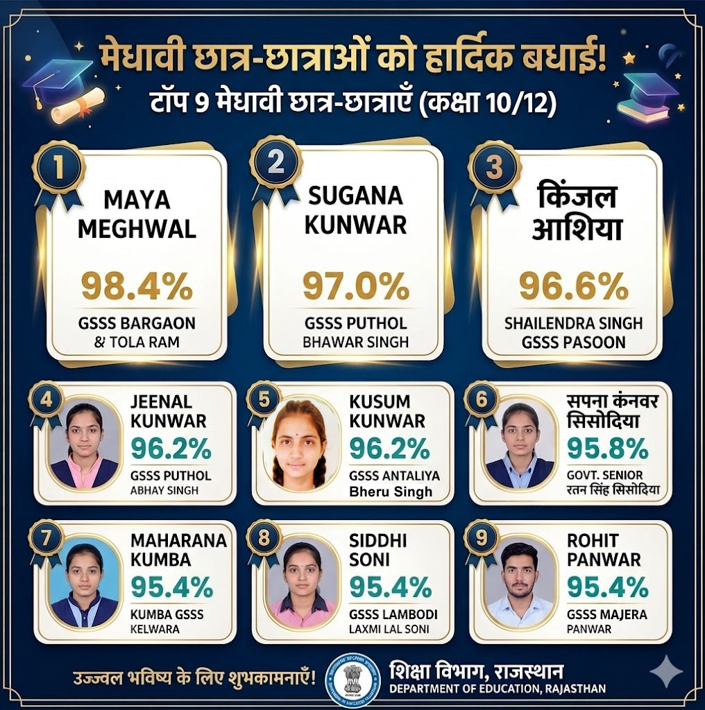 विज्ञान वर्ग में राजसमंद जिले के अव्वल विद्यार्थी