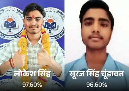 विज्ञान संकाय में शिशोदा के राजकीय उच्च माध्यमिक स्कूल के छात्र सूरजसिंह चुंडावत ने 96.60 प्रतिशत अंक प्राप्त किए। सूरज के फिजिक्स और मैथ्स में 100 में से 100 नंबर आए। उसके पिता की मुम्बई में हार्डवेयर की दुकान है, मां गृहणी है।