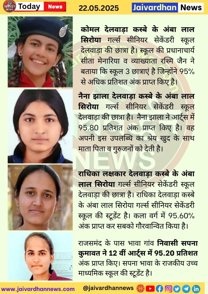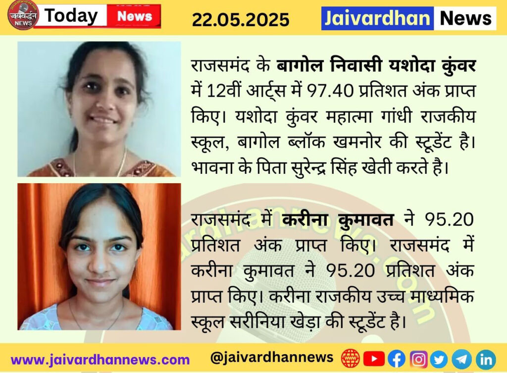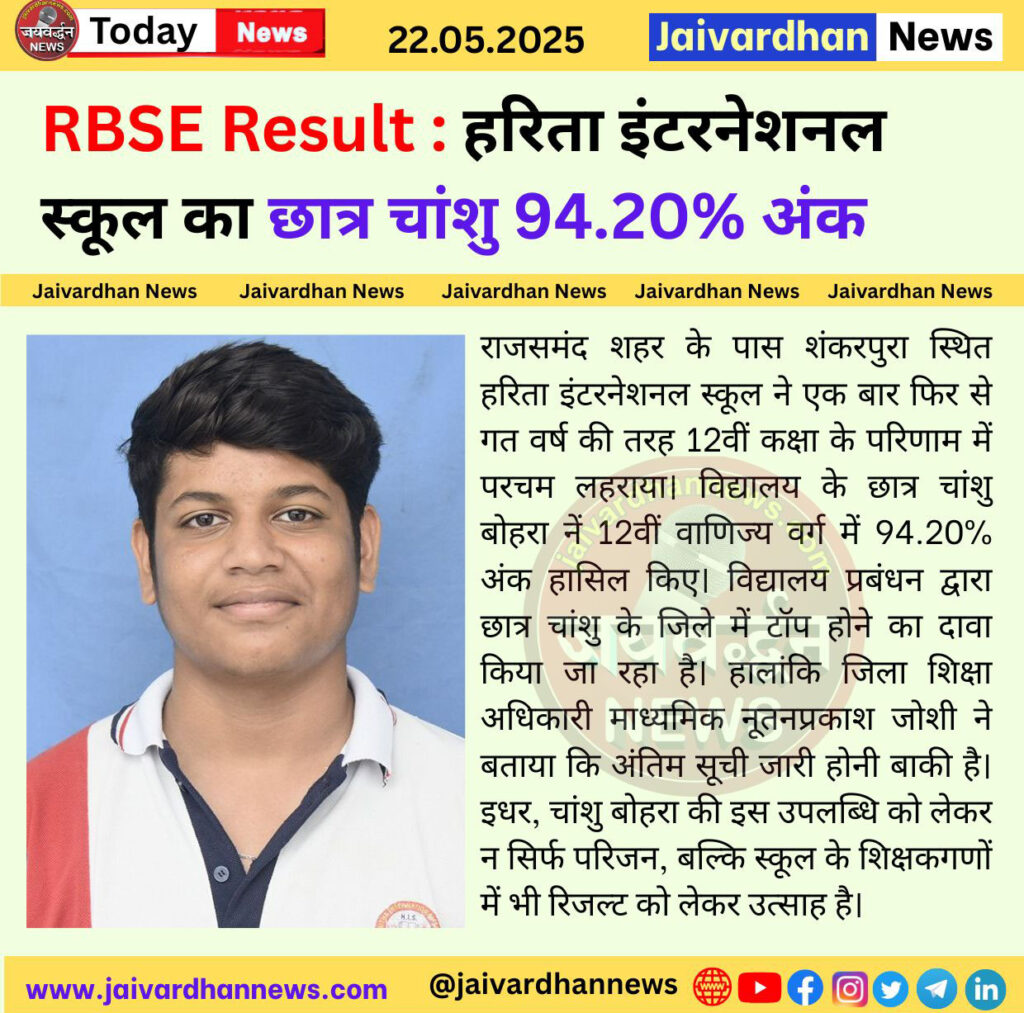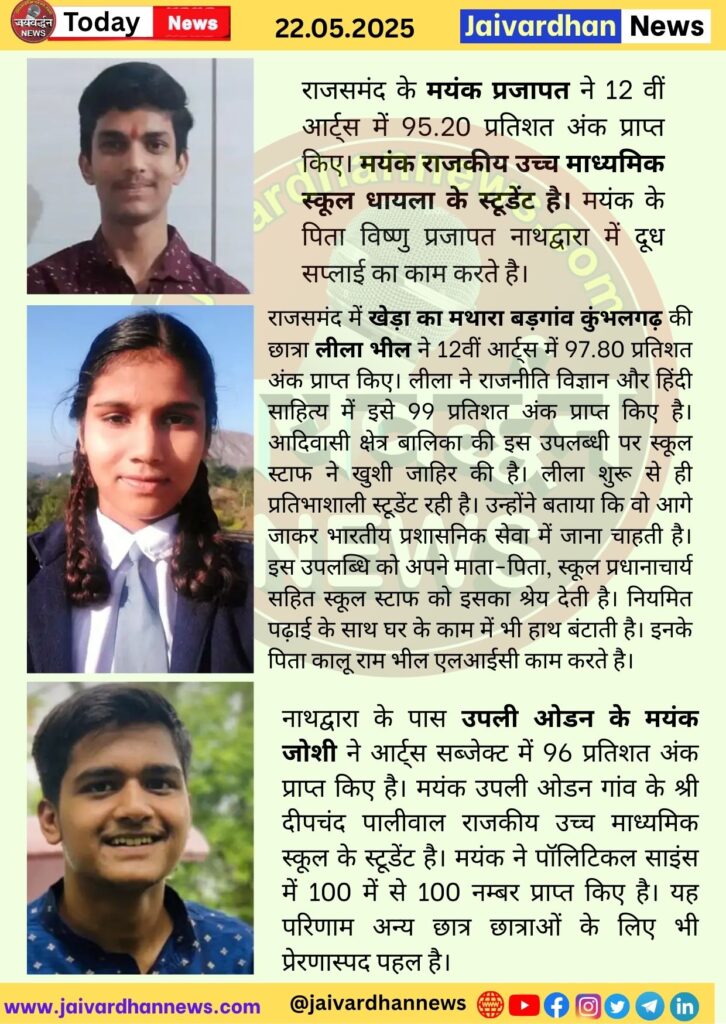 Rajasthan Board of Secondary Education : वर्ष 2024 में विज्ञान में राजसमंद जिला प्रदेश में 20वें स्थान पर था और इस वर्ष प्रदेश में पहले स्थान पर रहा। इसी तरह वर्ष 2024 में कला संकाय में राजसमंद प्रदेश में 15वें स्थान पर था और इस बार दूसरे स्थान पर है, जबकि वाणिज्य संकाय की बात की जाए, तो वर्ष 2024 में राजस्थान में राजसमंद जिला तीसरे स्थान पर था, जबकि इस वर्ष प्रदेश में सातवें स्थान पर पहुंच गया। फिर भी तीनों संकायों की तुलनात्मक स्थिति देखी जाए, तो परीक्षा परिणाम बेहतर है, जो न सिर्फ छात्र छात्राओं का उत्साह बढ़ाएगा, बल्कि स्कूलों के शिक्षकों को भी प्रोत्साहित करेगा।