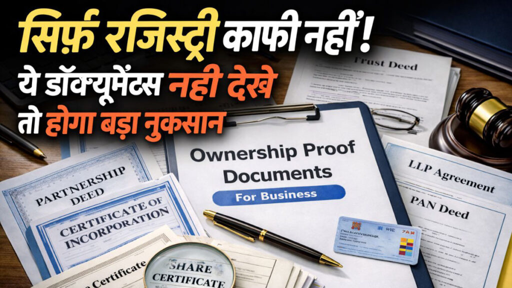 किसी भी व्यवसाय (Business) में Ownership Proof यानी स्वामित्व के दस्तावेज बहुत जरूरी होते हैं। इनकी जरूरत बैंक लोन, GST रजिस्ट्रेशन, MSME/Udyam, निवेश, कानूनी विवाद, टैक्स फाइलिंग और सरकारी योजनाओं में पड़ती है। बिज़नेस का प्रकार बदलने पर स्वामित्व के दस्तावेज भी बदल जाते हैं।
