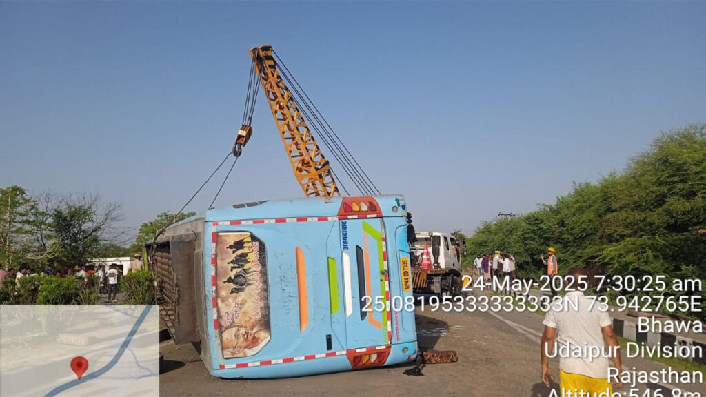 Rajsamand News : कांकरोली थाना प्रभारी हंसाराम ने बताया कि अहमदाबाद से भीलवाड़ा जा रही ट्रेवल्स बस फोरलेन पर भावा गांव के पास अनियंत्रित होकर भावा गांव के पास पलट गई। बताया जा रहा है कि चालक झपकी आ गई थी, जिसकी वजह से बस बेकाबू होकर पलटते हुए दूसरी तरफ की लेन पर आकर घूम गई। बस में करीब 25 यात्रियों के होने की सूचना है और हादसे में 3 लोगों की मौत हो गई, जबकि गंभीर घायल एक और व्यक्ति आरके जिला चिकित्सालय में दम तोड़ दिया। बताया जा रहा है कि कुल 17 लोग घायल हुए, जिनमें एक गंभीर घायल को उदयपुर रेफर कर दिया, जबकि 22 घायलों का आरके जिला चिकित्सालय में इलाज जारी है। हादसे की सूचना पर कांकरोली थाना प्रभारी हंसाराम मय जाब्ते के मौके पर पहुंच गए और एम्बुलेंस से घायलों को तत्काल आरके जिला चिकित्सालय पहुंचा दिया गया। साथ ही पुलिस ने क्रेन मंगवाकर क्षतिग्रस्त बस को फोरलेन से हटाते हुए यातायात व्यवस्था बहाल कर दी। भावा के समाजसेवी जगदीश सालवी ने बताया कि दुर्घटना के बाद मौके पर चीखने व चिल्लाने की आवाज सुनकर कई ग्रामवासी मौके पर पहुंच गए और बस में फंसे लोगों को बाहर निकालने के प्रयास शुरू कर दिए। उस दौरान एक व्यक्ति ने तो मौके पर ही दम तोड़ दिया। हादसे के बाद अतिरिक्त जिला कलक्टर नरेश बुनकर व अतिरिक्त जिला पुलिस अधीक्षक महेन्द्र पारिक भी घटना स्थल पर पहुंच कर मुहायना किया उसके बाद व आरके जिला चिकित्सालय पहुंचे जहां उन्होंने घायलों की कुशलक्षेम पुछी।