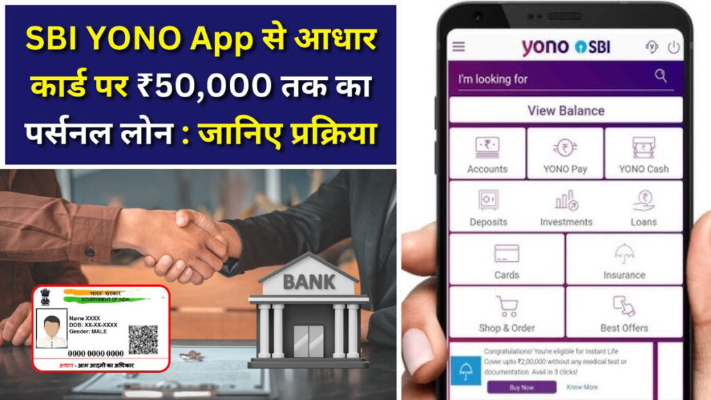 SBI YONO 1 lakh Loan : अगर आप अपने आधार कार्ड और सीमित दस्तावेज़ों के आधार पर SBI YONO ऐप के माध्यम से ₹1,00,000 तक का पर्सनल लोन लेना चाहते हैं, तो यह पूरी प्रक्रिया आपके लिए है। SBI अपने YONO (You Only Need One) डिजिटल प्लेटफॉर्म पर पर्सनल लोन की सुविधाएं बिना किसी फिजिकल दस्तावेज़ या बैंक विज़िट के देती है – वो भी मात्र कुछ मिनटों में।